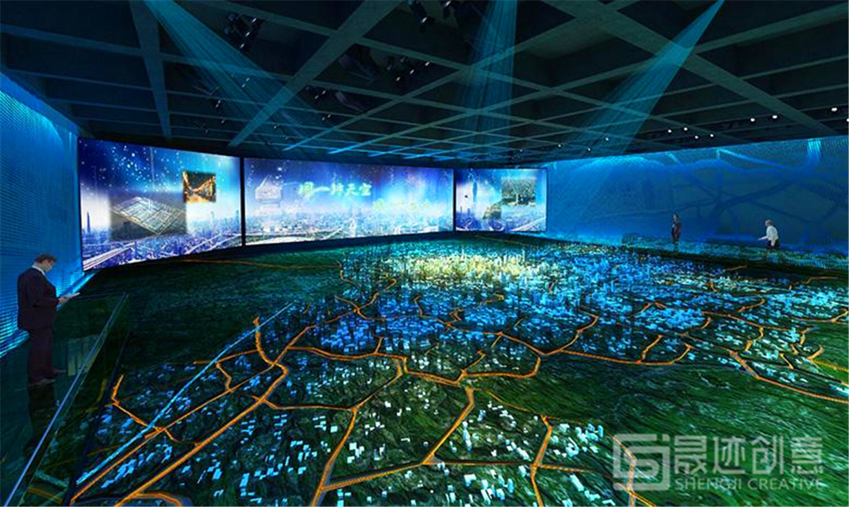 投影数字沙盘主要由许多高科技多媒体技术实现。将模拟的三维立体印象准确地投影到实体模型的相应方向,并反映与物理沙盘交互播放的演示,从而使沙盘的演示效果更加生动。此外,访问者还可以通过物理动作与大屏幕上的图片模型进行交互,从而满足访问者更深层次的查询内容并快速获取动态信息。